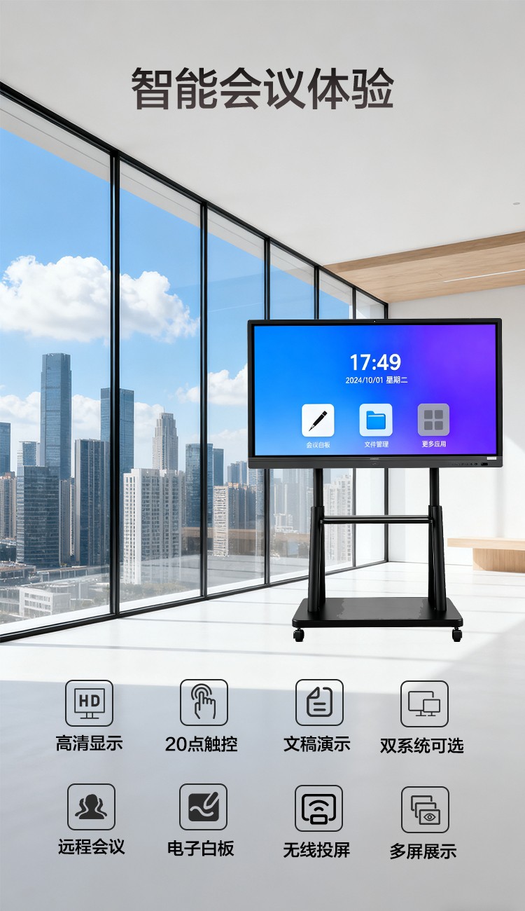 集电视、投影仪、电子白板、广告机、音响等多功能为一体具备远程视频会议、